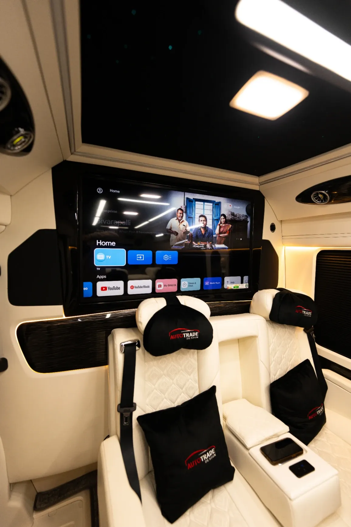 This Urbania’s modificaton package makes your van into a luxury lounge Modification which is perfect for family trips & corporate shuttles. Upgrade your Force Urbania interior with premium leather, ambient lighting, and a smart LED T.V.